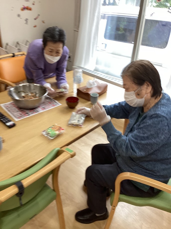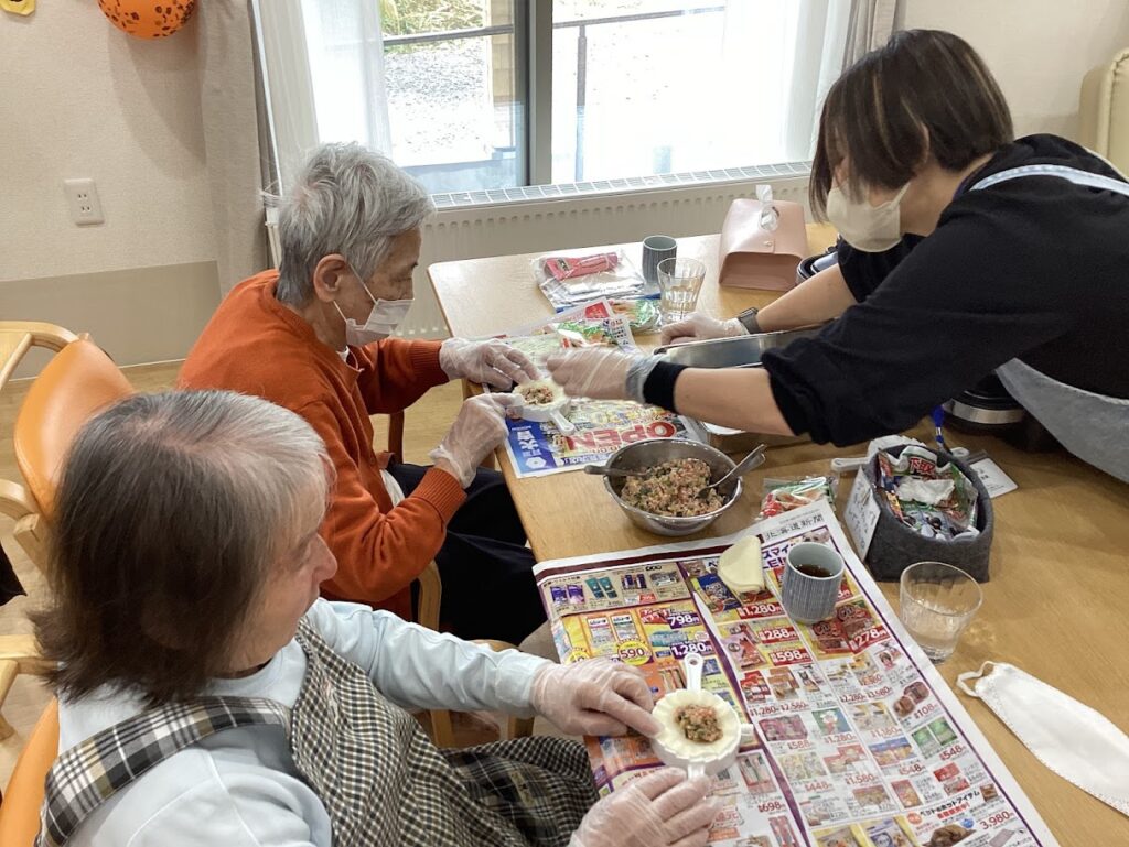 お品書きを作り、おにぎりの具は利用者様一人ひとりにお好きなものを選んでいただきました。