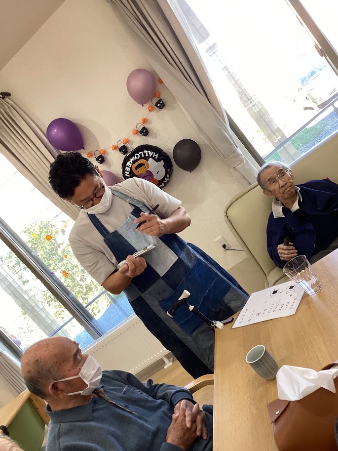 管理者の「炭火で焼いた秋の味覚をみんなに食べてもらいたい」の話から始まった七輪での炭火焼き(不定期開催)ですが、文字どおりみなさんとり逃すことなく、全利用曜日に開催いたしました。