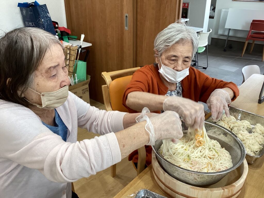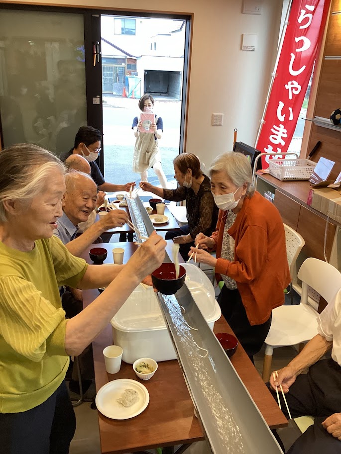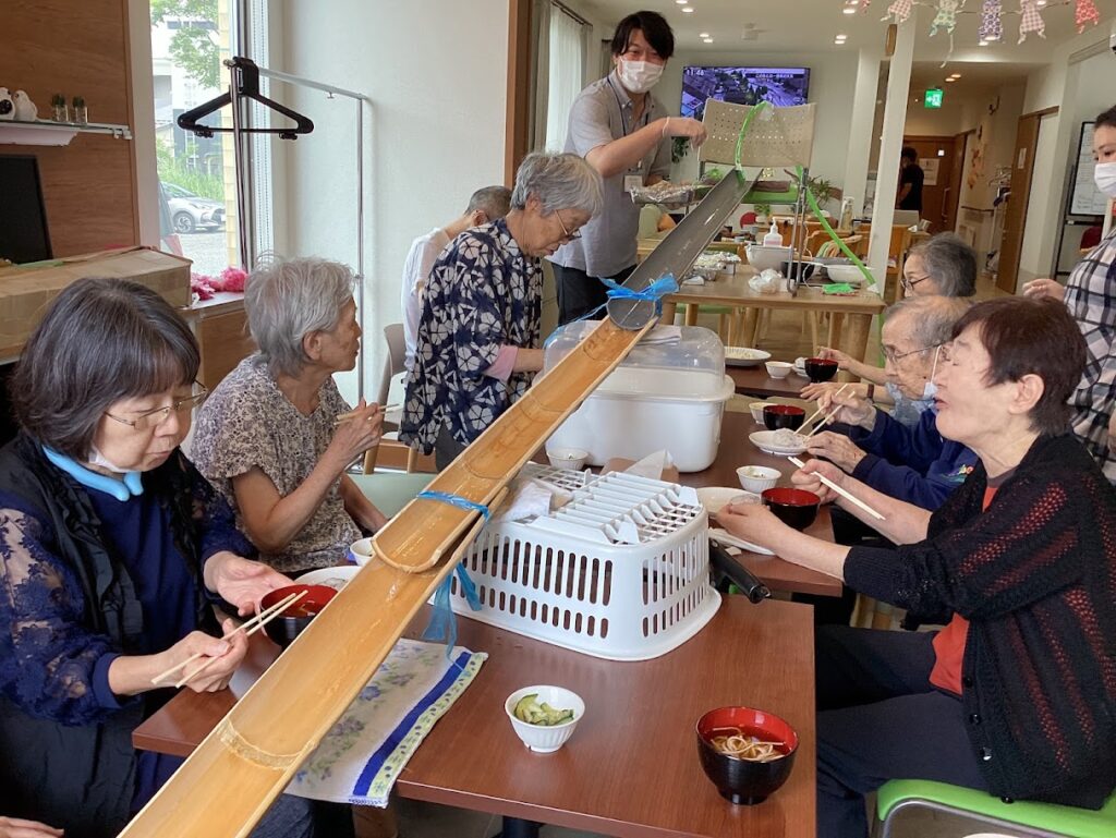 8月の最後の週、2日にわたり流しそうめんを行いました。